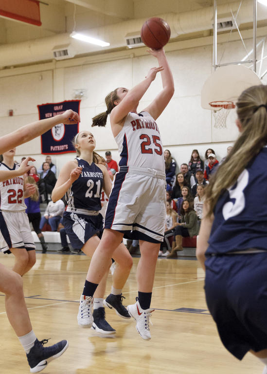 GRAY – The Patriots and the Clippers wrestled through a low-scoring affair on Tuesday evening, Jan. 31, one that saw G-NG surge ahead in the second and Yarmouth battle back in the third. In the end, however, the Patriots held on to emerge narrowly victorious 31-27, Bri Jordan leading the way with 11.