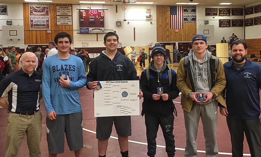 Blazes coach John Nicholas remarked on his boys’ performances. “Stephen Foster had a great tournament with three pins to come away with the championship,” Nicholas said. “He has come a long way since the beginning of the season and is peaking at the right time. Ryan Shackley had a tough weight class and battled hard to make it to the consolation finals. This will be his third trip to the State Tournament. Connor Kerwin also wrestled well, making it to the consolation finals; he’ll making his first trip to the State Meet. Brandon Lebourdais pulled a big upset in the semifinals and made it to the finals. He has also come a long ways and is wrestling very well right now. Jared Grant will be an alternate and is hoping to get in. We are going to work hard this week and put it all out on the table at States. The team has had a great season thus far and we would like to keep it going.”