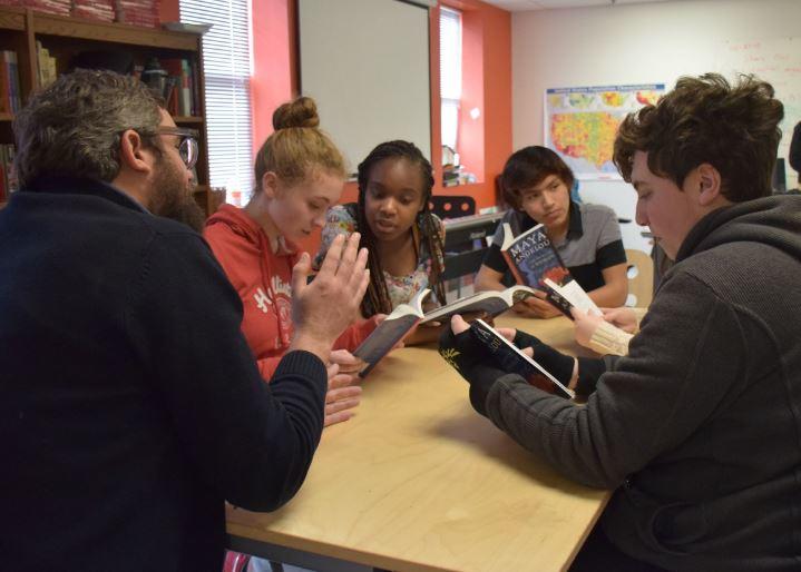 Baxter Academy students reading and discussing the works of poet Maya Angelou.