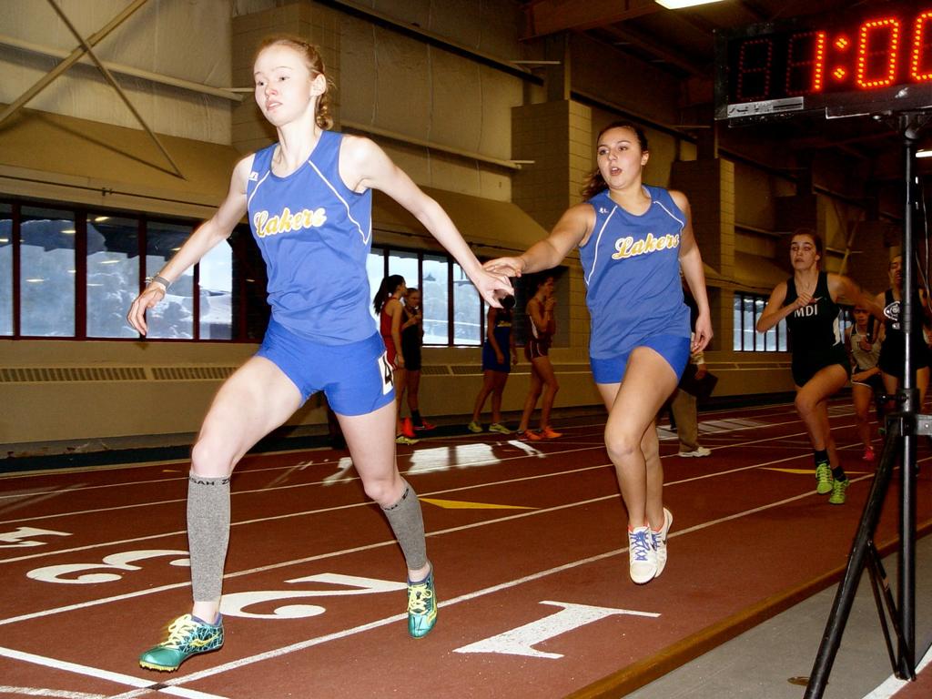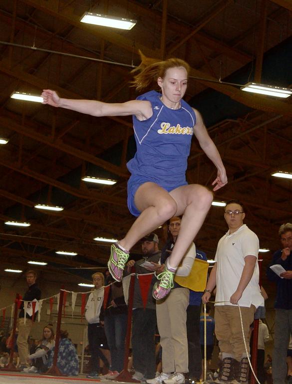 Three Lady Lakers, meanwhile, made the podium: DeSouza in the Shot Put (34-04.25); Catherine Christiansen in the 400 (fifth, 1:03.09 – a new school record); and Hannah Chadwick in the Triple Jump (third, 33-07.25 – another new school record). Chadwick also took 10th in the Long Jump (14-11.75) and tied for ninth in the High Jump (4-08.00). Danica Chadwick took eighth in the 55 Hurdles (9.83) and 10th in the Triple Jump (30-09.50), where Emily Colson finished eighth (31-02.00) and Meghan Boos 12th (30-00.50). Finally, the 4×200 contingent – Colson, Christiansen, Leoni Kohnen and Danica Chadwick – finished 18th (2:03.59).