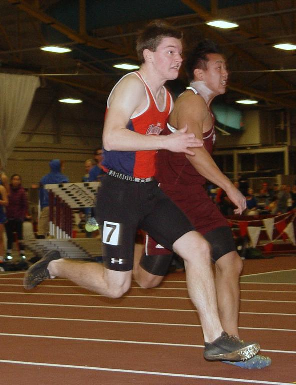 LEWISTON – Class B schools from across Maine converged on Bates College on Saturday, Feb. 18 for this year’s Indoor Track State Championship. A number of local favorites stood out for their schools and communities: Gray-New Gloucester’s Emma MacCallum won the Shot Put outright, for instance, Lake Region’s Sam DeSouza took third in the same event.