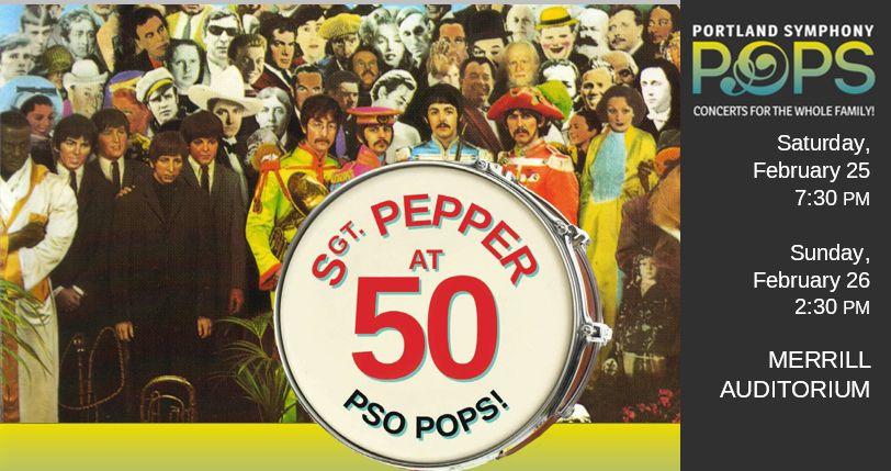 “Sgt. Pepper’s Lonely Hearts Club Band at 50,“ Portland Symphony Orchestra, Merrill Auditorium, 20 Myrtle St., Portland, Feb, 25, 7:30 p.m., Feb. 26, 2:30 p.m. Tickets $25-$75 through PortTIX, 842-0800 or www.porttix.com.