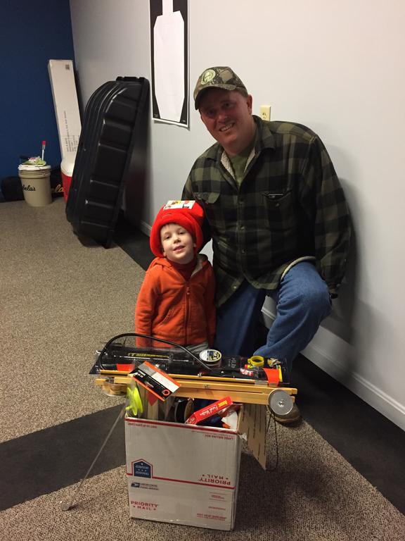 Aaron Shaw, 4, of Freeport, won several prizes at the Sebago Lakes Rotary Ice Fishing Derbies awards ceremony on Sunday night. His father, Mike, says that they fished on Long Lake during the derby.