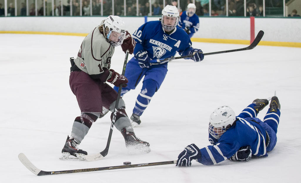 “Kennebunk played a strong first six, seven, eight minutes of the third period and it got a little scary,” Mothes said. “We didn’t take care of the puck and they got it to 3-2, but we had a good response to answer right away. The resiliency was good tonight. We’re a young team in a lot of ways, even though we have seniors. When we were sitting at 3-5, the seniors sat down and talked. We stressed the urgency. They upped the level of their game, working hard, winning puck battles, showing maturity. They’ve played in playoff games in other sports and that focus and sense of stability has been important.
