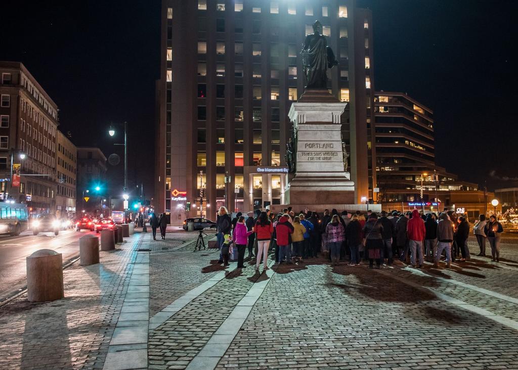 A Feb. 24 candlelight vigil in Monument Square drew dozens to celebrate the life of Chance David Baker, who was killed by Portland police Feb. 18. (Dan D’Ippolito / For The Forecaster)