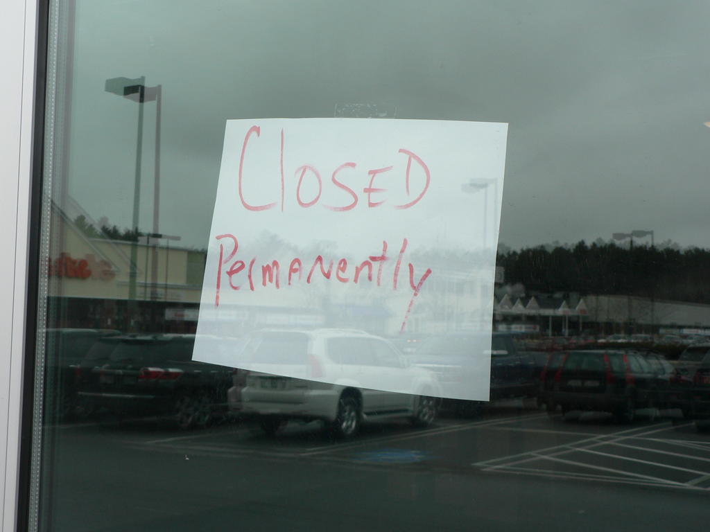 A handmade sign on the door of the now-closed Radio Shack in Falmouth.