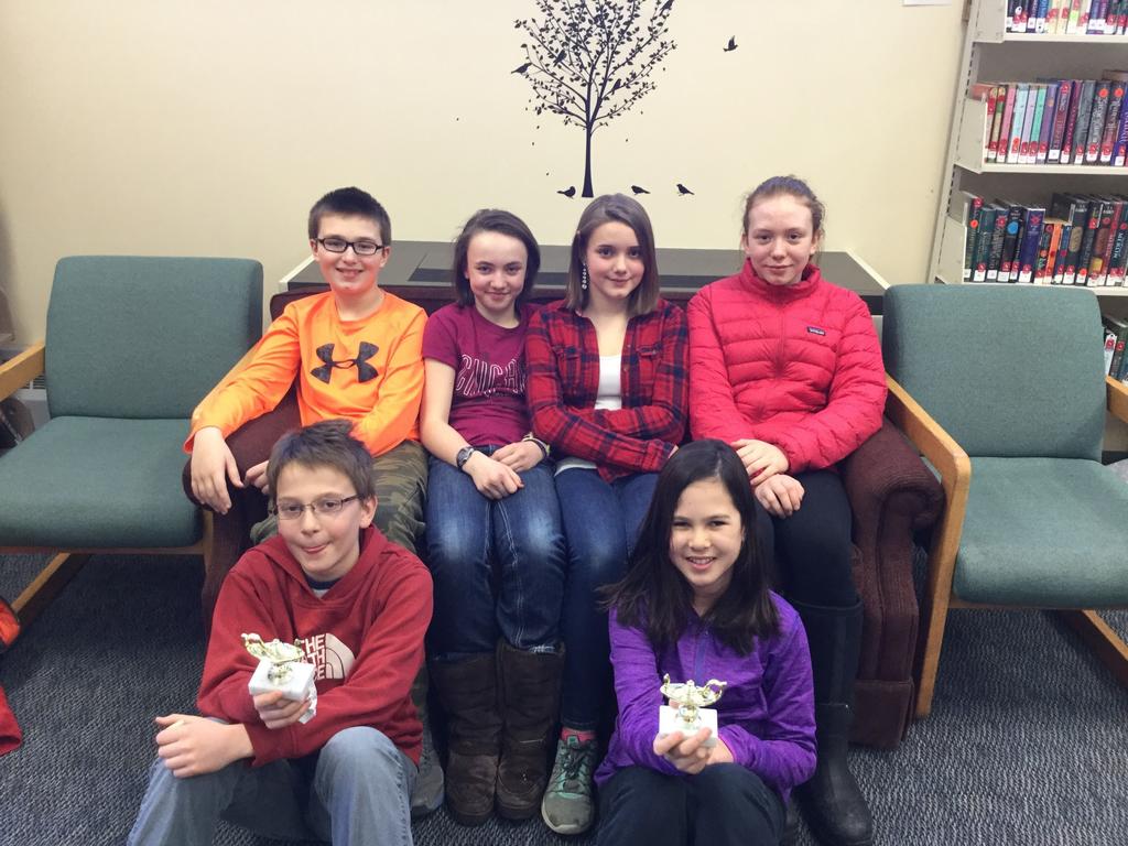 Logan Schulz and Lily Gillis, sitting in front, earned perfect scores when the Freeport Middle School sixth-grade math team attended their most recent meet March 16, scoring 40 of a possible 40 points on arithmetic and geometry questions. The Southern Maine Elementary Math League meet was held at the Holiday Inn by the Bay in Portland. The meet included 24 local schools, with teams of six students each. The Freeport team ranked sixth overall. Top row from left are Aidan Heath, Emmalynn Pierce, Lauren Roussel and Isla Wilson.