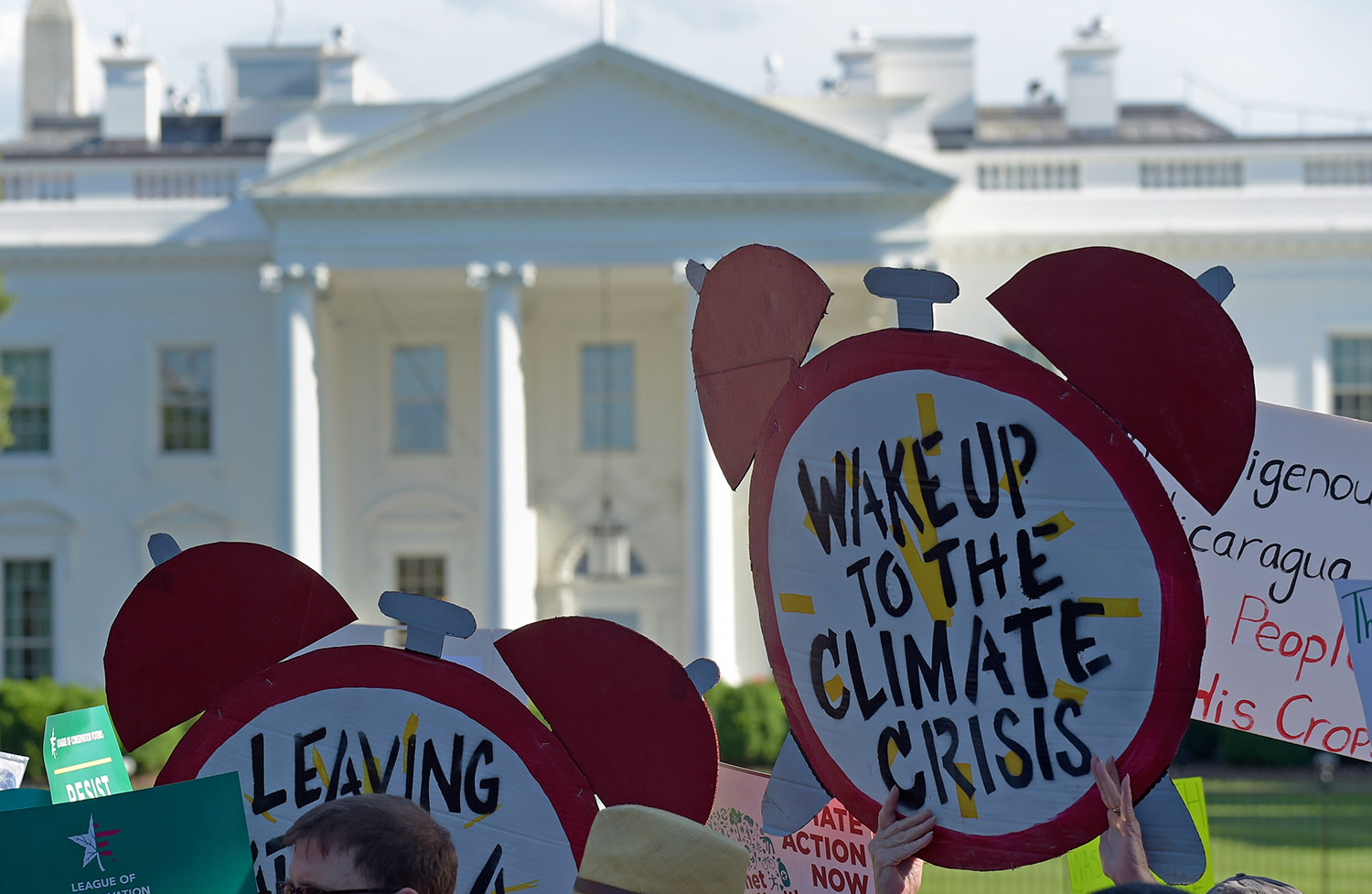 Trump spoke from the White House Rose Garden on a warm, sunny day. Seated in the front row were aides who had advocated for the withdrawal, including EPA administrator Scott Pruitt and chief strategist Steve Bannon. During Trump’s speech, the faint sounds of protesters could be heard in the distance banging drums.