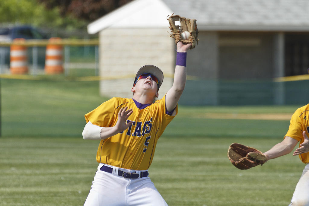 Justin Ray reels in an infield fly for the Stags vs. the Rams.