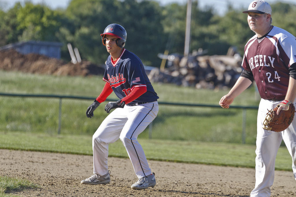 Greely’s three-run third began when Mann, on the mound for the Patriots, met with some uncharacteristic control issues, walking the bases loaded. A sac fly, a fielder’s choice and a single brought home Fried again, as well as Zach Brown and Jack Saffian, propelling Greely out front 4-1.
