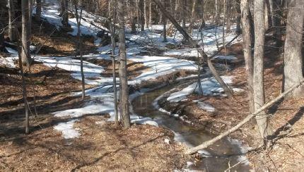 Meader Brook runs through a wooded site off Brook Road in Falmouth that’s being reviewed for potential development.