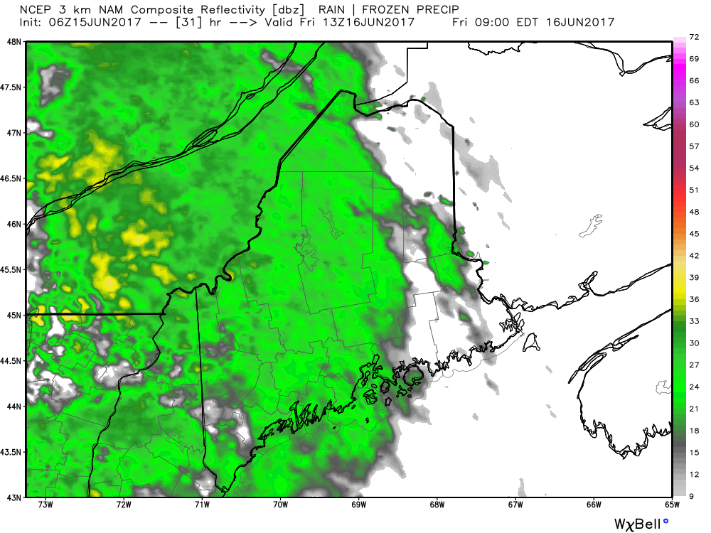 Here in Maine the forecast is similar. Look for a few morning showers, an increase in humidity and temperatures nearing 70 or slightly higher. Coastal areas will likely struggle to get out of the 60s as the warm front remains just south of Maine.
