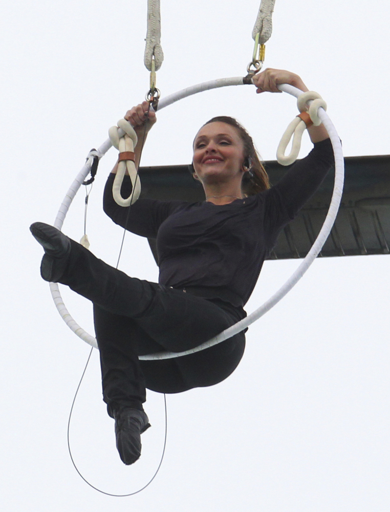 Erendira Wallenda, who traces her circus roots back seven generations on one side and eight on the other, also performs on a 70-foot sway pole and high wire. She set a world record in 2016 by completing 40 revolutions in her hoop in 50 seconds beneath a helicopter above the Atlantic City shore.