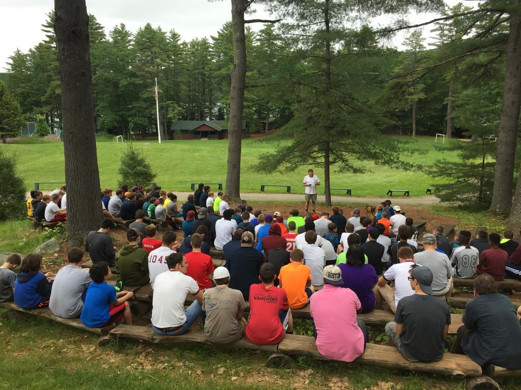 Camp Agawam Director Erik Calhoun addressed campers during day one of the Maine Idea program.