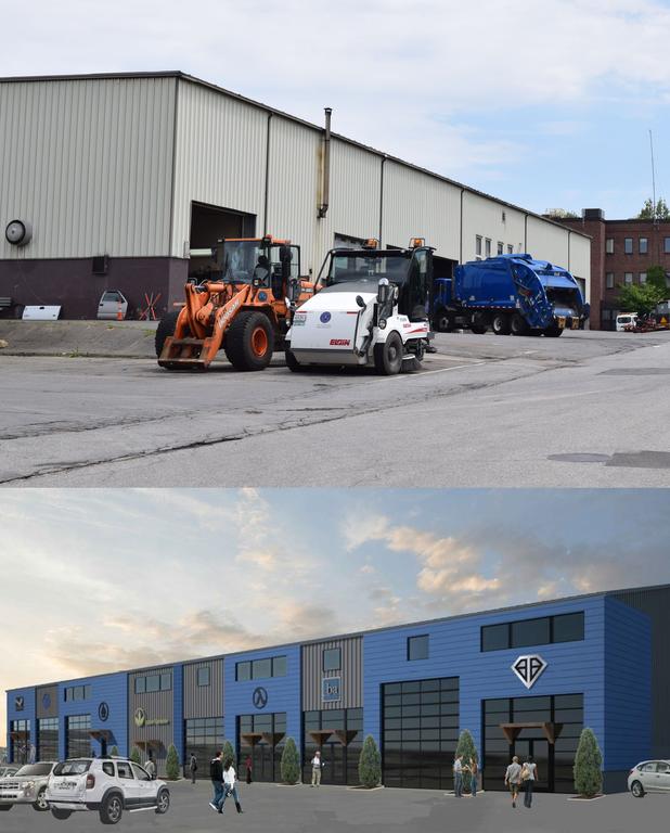 One proposal for city-owned land in Bayside would convert the Public Works vehicle repair building at 44 Hanover St. to offices for small businesses.
