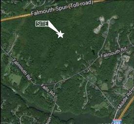 The proposed site for a new cell tower, which would be located about 3,000 feet back from Falmouth Road and serve the area of town west of the Turnpike Spur.