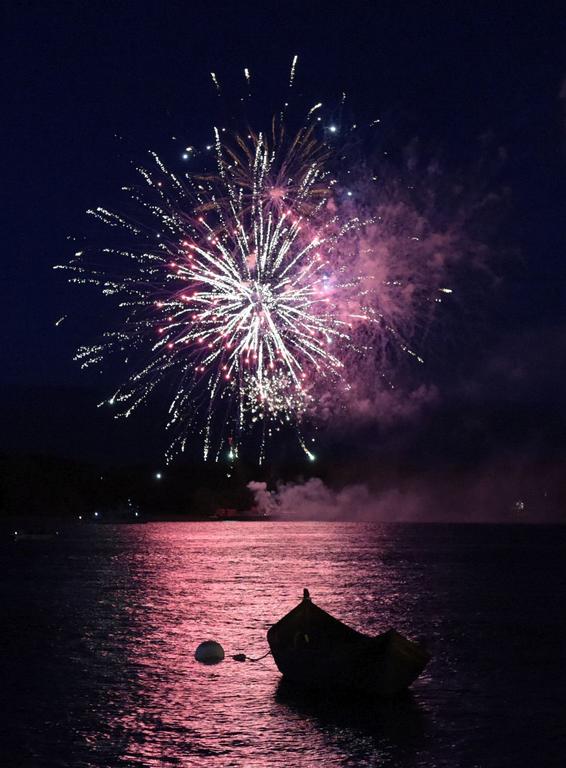 Fourth of July fireworks over the Kennebec River in Bath.