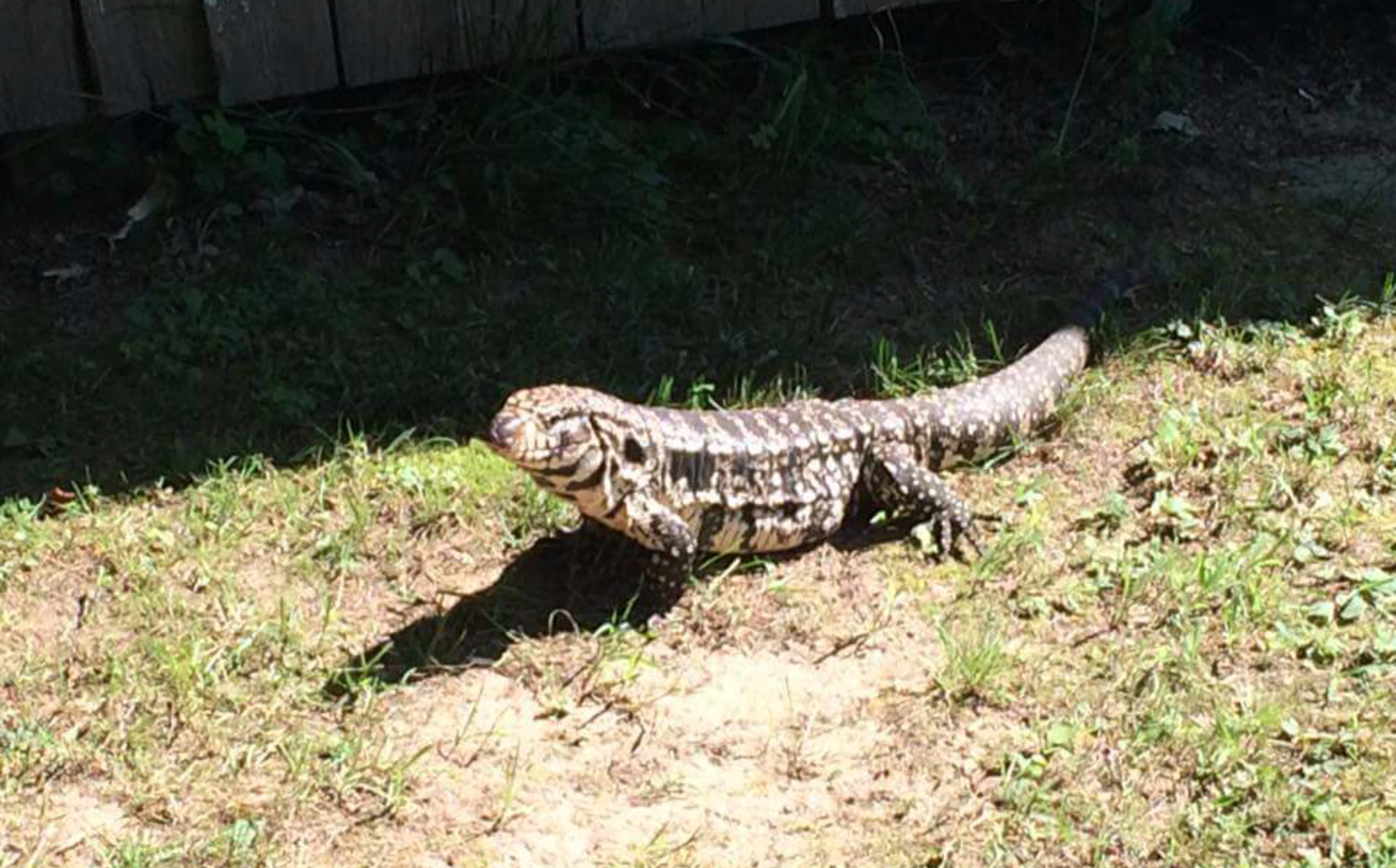 Residents of the neighborhood first noticed the lizard, an Argentina black and white tegu, in their backyard Thursday. Police said it was living under the shed in an old groundhog burrow.