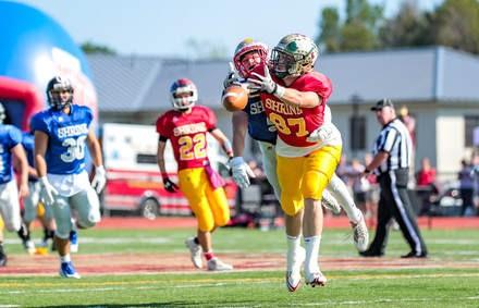 The West’s defense then made its presence felt in a big way, as on a third-and-11 play from the East 26, McSweeney was intercepted by Traip Academy’s Angelo Succi, who returned it 35 yards for a touchdown. The West’s two-point conversion pass failed, but with 8:38 remaining before halftime, the lead was 19-0.