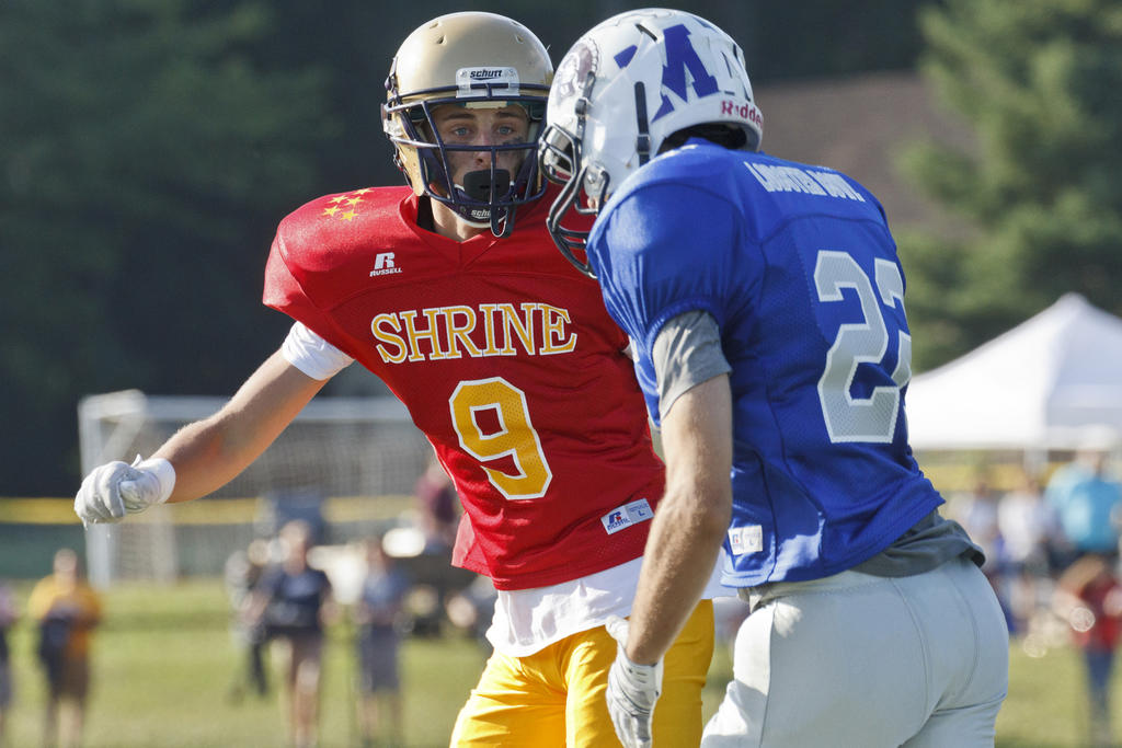 SACO—Cape Elizabeth’s Ben Ekedahl and Deering’s Rob Dacey weren’t thrilled with the way their senior year high school football seasons ended last fall, but Saturday afternoon at Hill Stadium on the campus of Thornton Academy, they got to take the field one final time and they, as well as their West teammates, bowed out in style in the 28th annual Maine Shrine Lobster Bowl Classic.