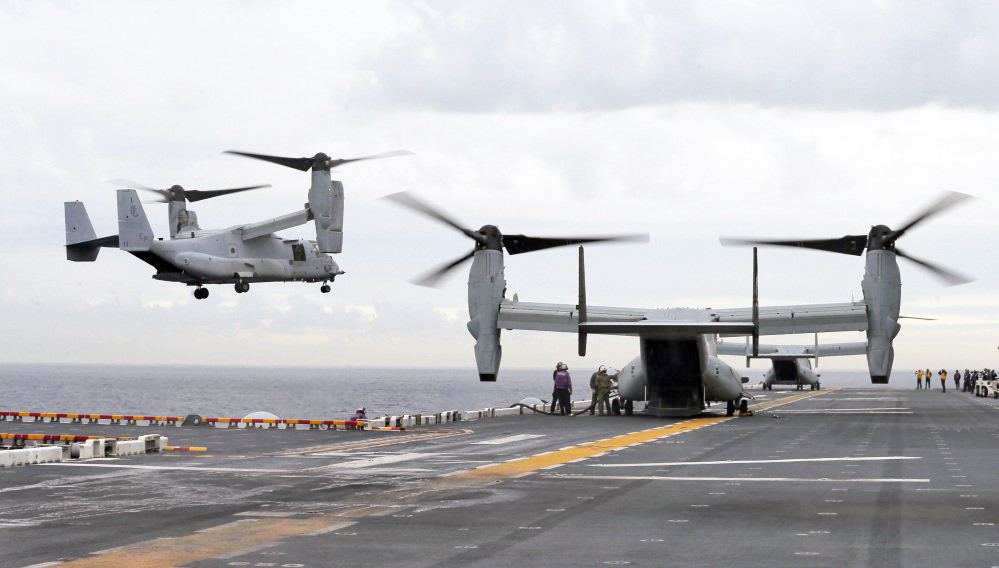 In 2015, an Osprey crashed during a training exercise in Hawaii, killing two Marines. Last December, an Osprey crash-landed off Japan’s southern island of Okinawa. Its five crew members were rescued. And in January, three U.S. soldiers were injured in the “hard landing” of an Osprey in Yemen, the AP reported.