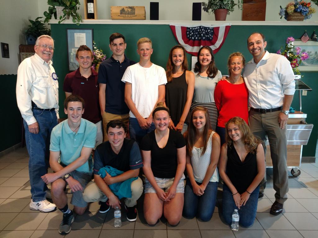 Ten students involved in the Gorham High School Interact Club, sponsored by the Rotary, attended a Westbrook-Gorham Rotary Club meeting on July 25. Pictured, from left in front, are students Garrett Higgins, vice president; Ben Nelson, director; Michelle Rowe, director; and Sarah Walker and Hailey Morrill, who each attended Rotary Youth Leadership Awards camp in Raymond. In the back, from left, are Dave Rolfe, Rotarian; Aaron Farr, Interact president; Sean Pocock, director; Jon Scriber, treasurer; Sarah Stevens, awards camp attendee; Abbie vanLuling, secretary; Neile Nelson, faculty advisor; and Ethan Johnson, Rotarian.