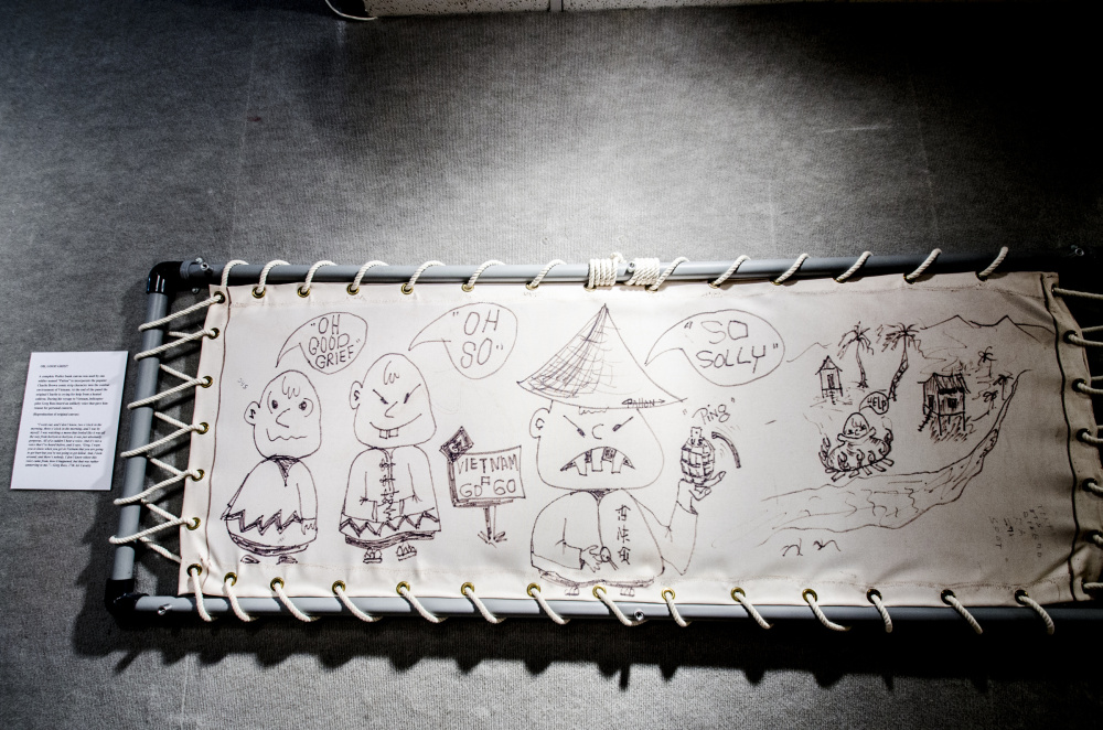 For the last month, the berthing unit from the troop ship has been displayed alongside other artifacts from the war preserved and compiled into an exhibit called the Vietnam Graffiti Project by Art Beltrone, a historian of military artifacts.