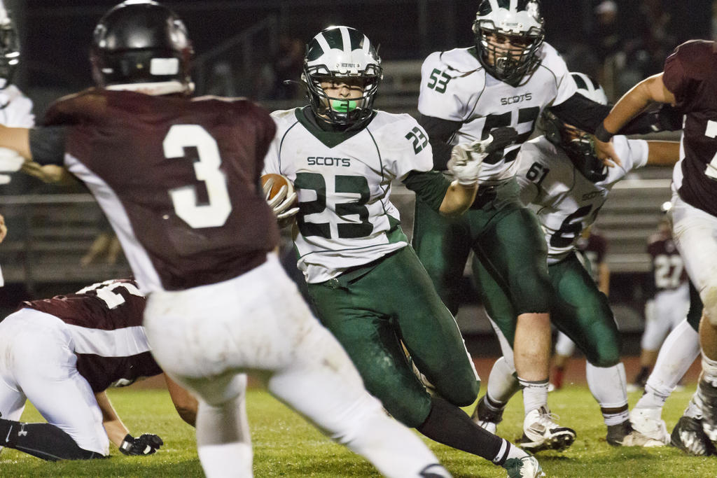Bonny Eagle takes to the gridiron to defend their 2016 State title this fall. Seen here: Alex Sprague runs a route in a game last season vs. rivals Windham.
