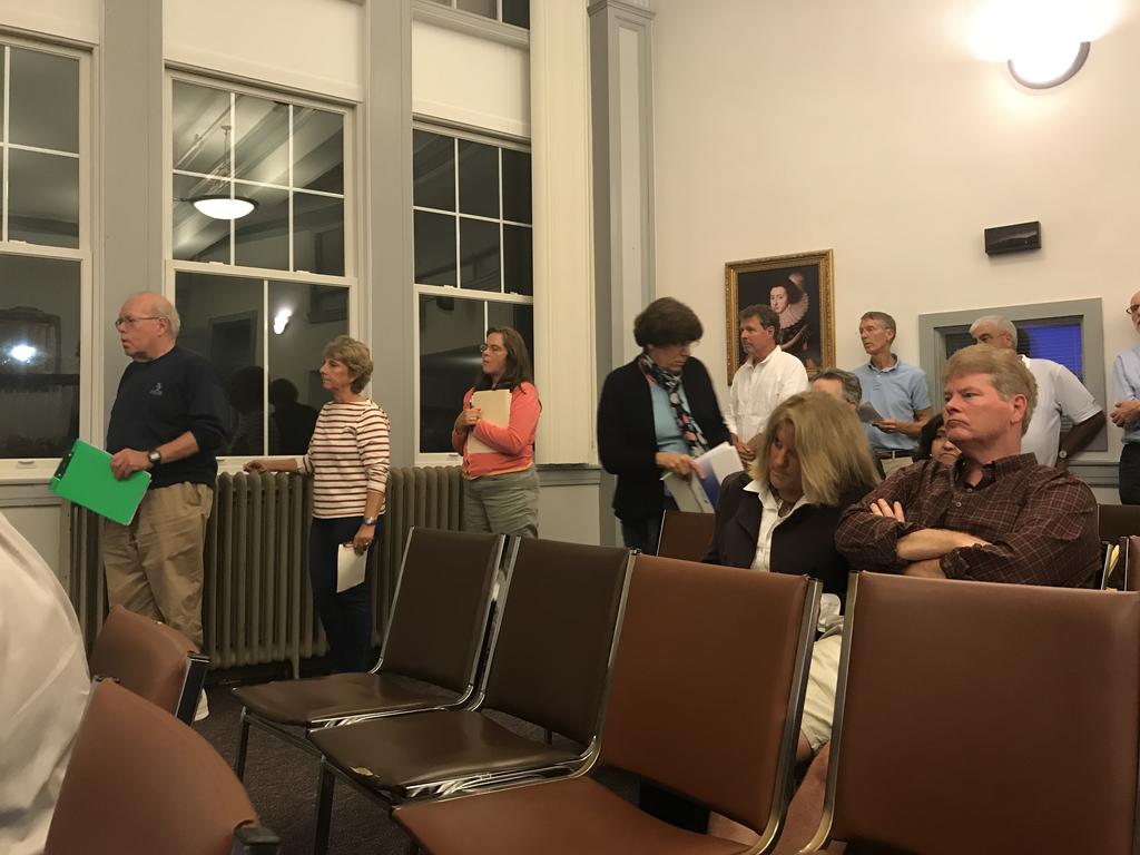 Cape Elizabeth residents queue up during an extended public comment period Wednesday to provide the council and Conservation Committee with questions, concerns, and recommendations regarding the development of paper streets.