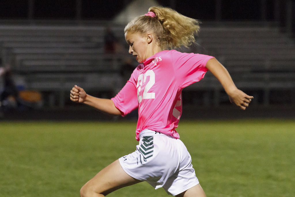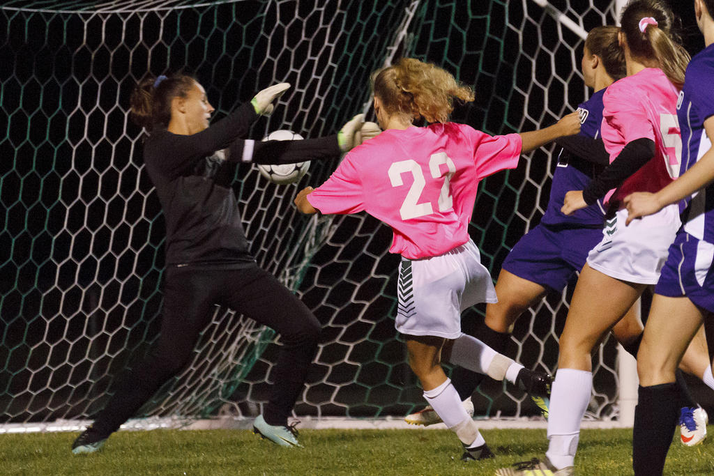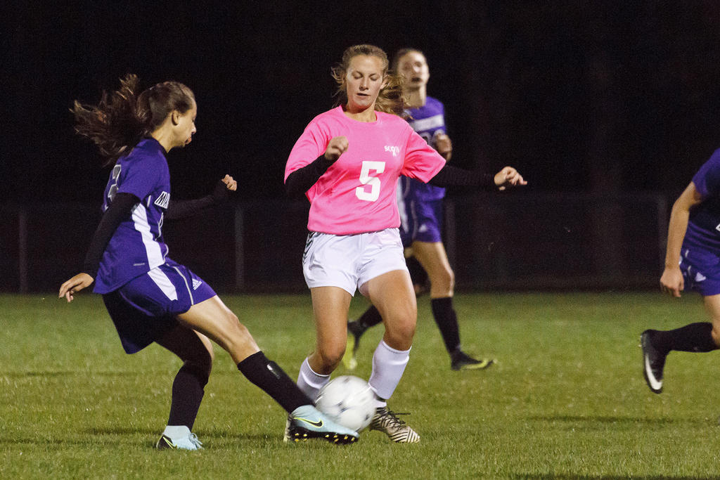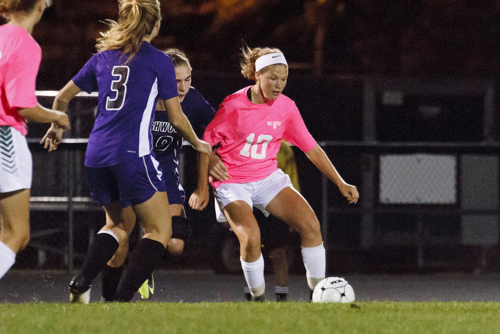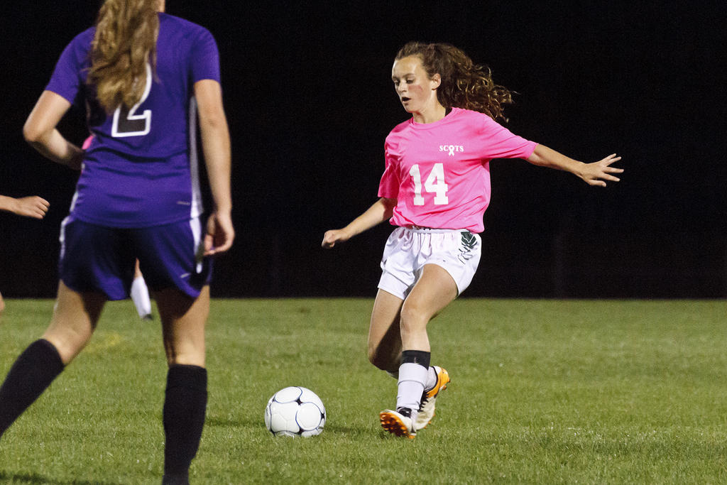 Laura Libby settles a ball for the Scots (wearing pink for breast cancer awareness).