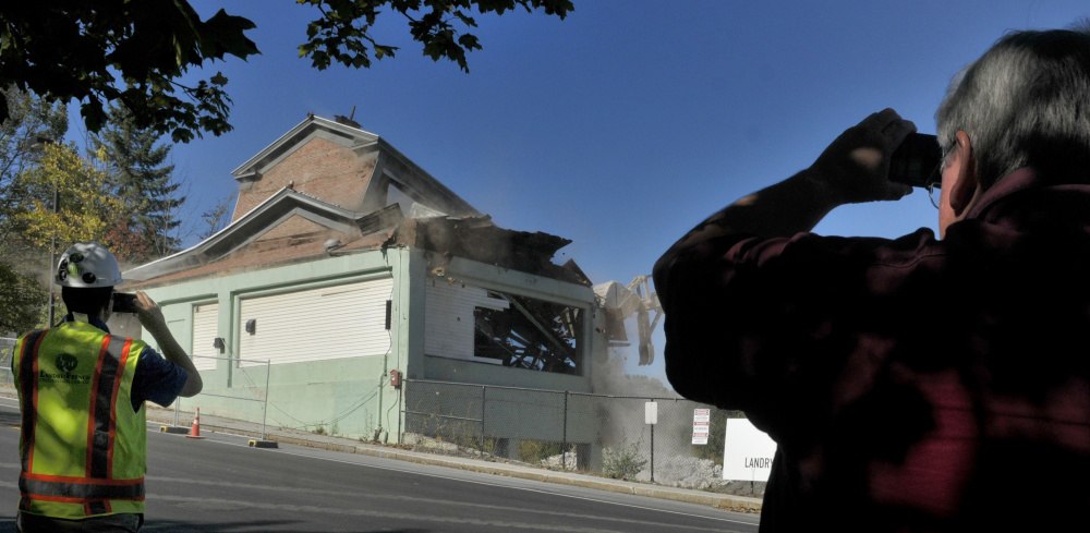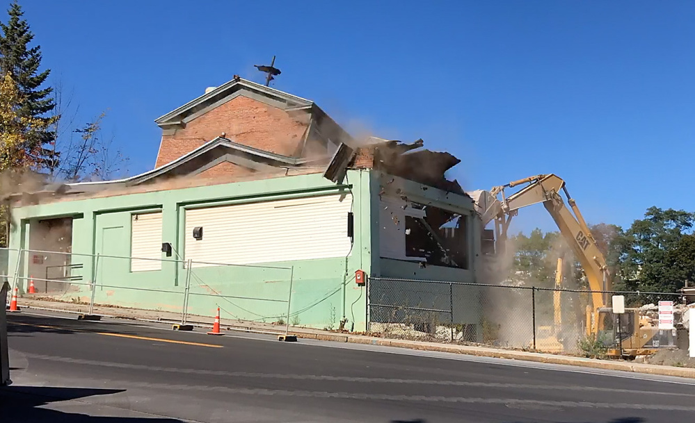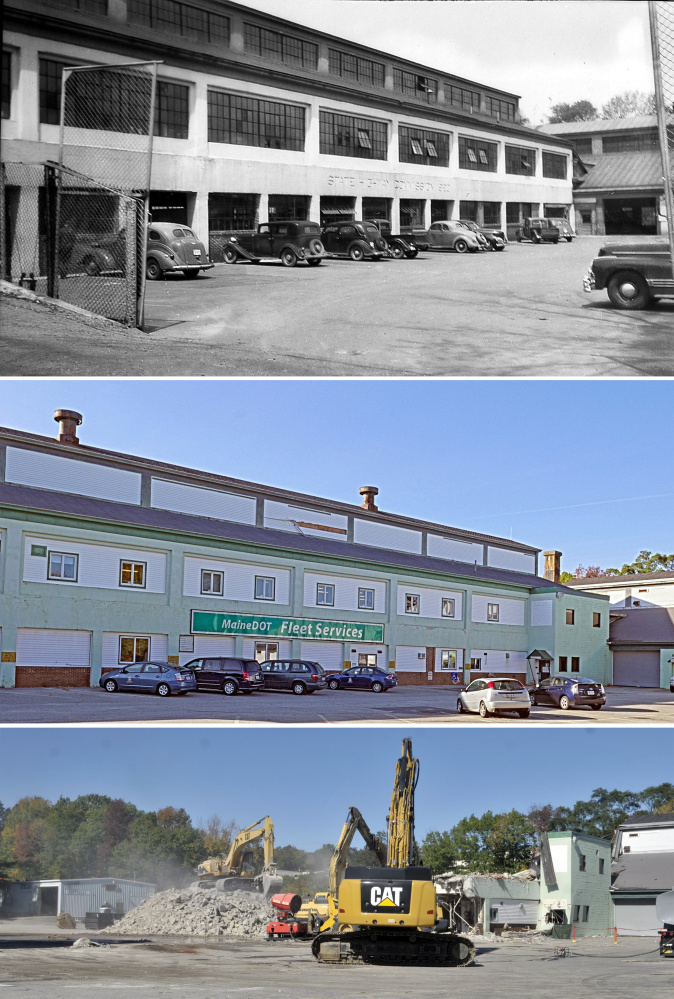 AUGUSTA — The large and distinctive, if outdated, green former Department of Transportation maintenance facility on Capitol Street is now largely a pile of rubble.