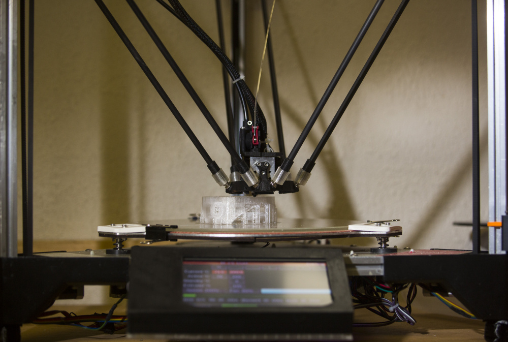 CUMBERLAND — Inside the unfinished basement of Dean Rock’s house, where the only natural light comes in through a pair of transom windows, a 3D printer whirs.