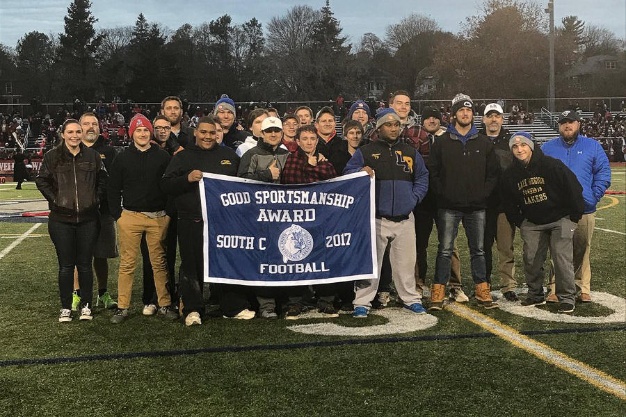 The Lakers pose with their hot-off-the-presses sportsmanship award.