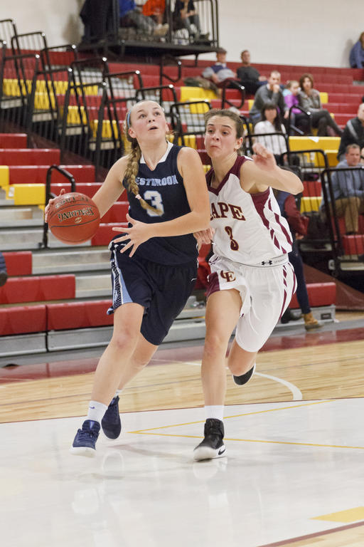 Avery Tucker battles for a bucket in a game at Cape Elizabeth last winter.
