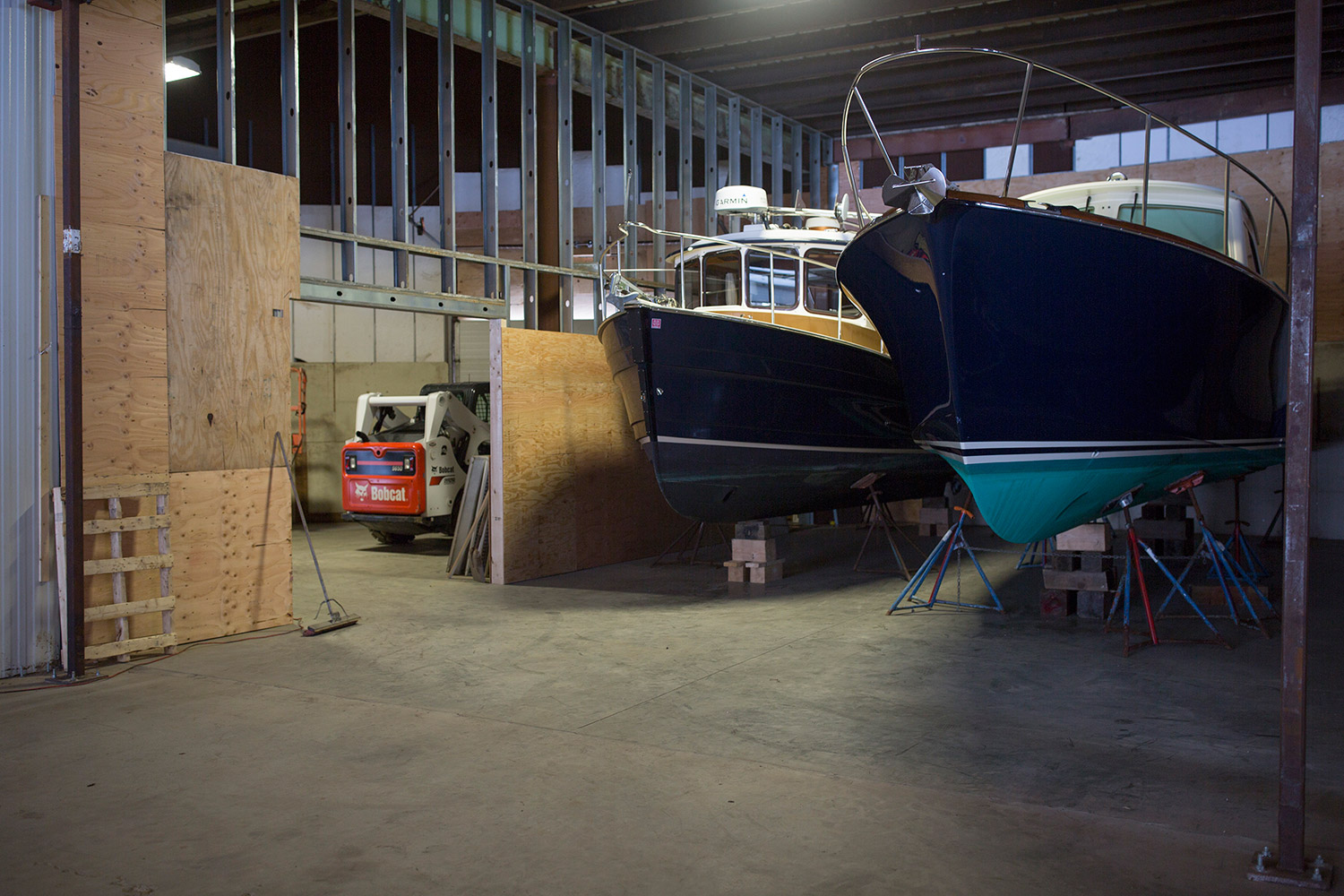 Inside, three pleasure craft – the longest is 42 feet – are lined up with two smaller boats, a food truck and a couple of personal vehicles. Setting his business in an unused oil tank is just an “extreme” example of industrial reuse, like apartments in vacant mills or shipping containers converted into homes, offices or shops, Davis said. The interior of the tank is split into three sections, including the expansive main storage area and two smaller storage and workshop spaces.