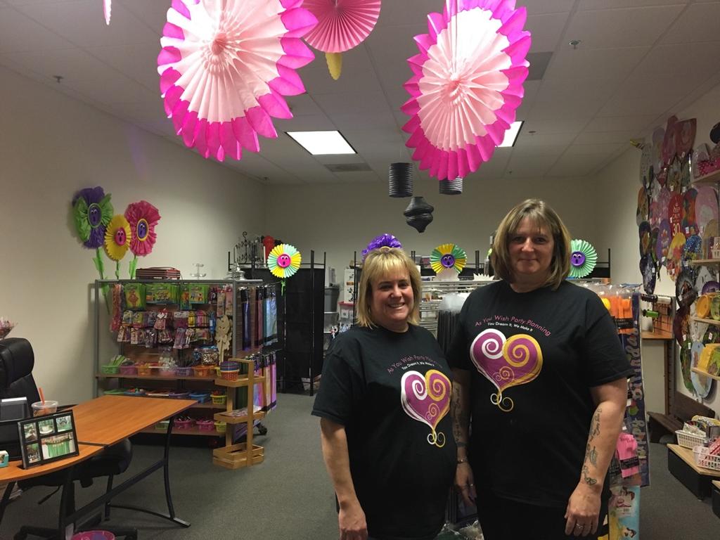 Stacey Backman, left, and Gail Gary, at As You Wish, their new party planning store at Senter Place in downtown Brunswick.