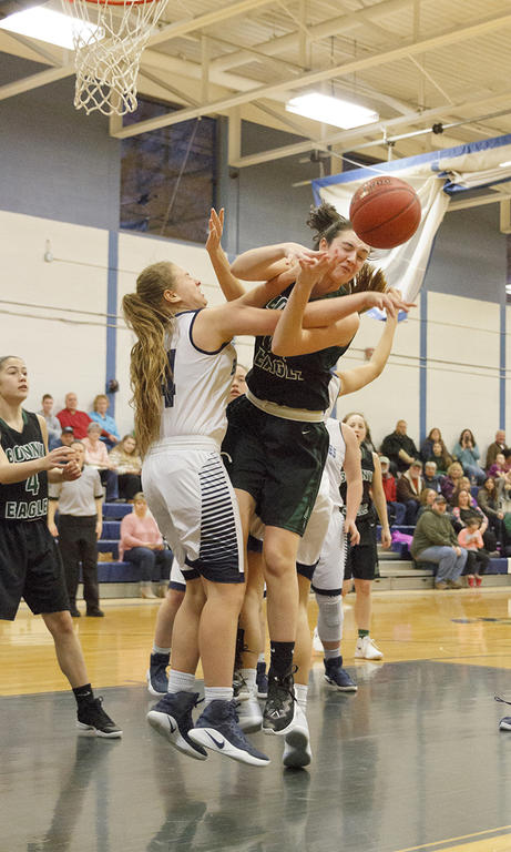 Westbrook’s Jodi Sinnett thwarts Bonny Eagler Makala Greene.