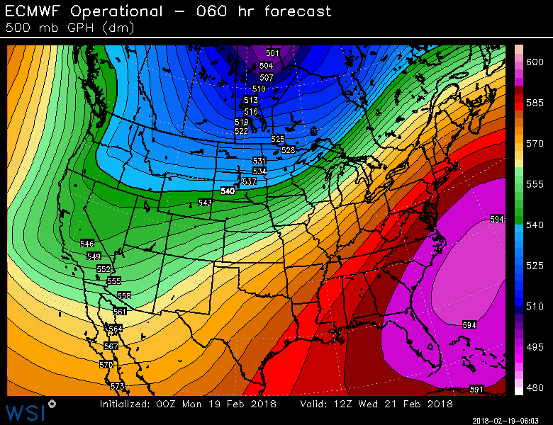 If I knew no better and glanced at the East Coast on the map below, I’d think it is mid-summer. This kind of a pattern produces our hottest summer days. It would translate to 90s and low 100s in the Northeast.