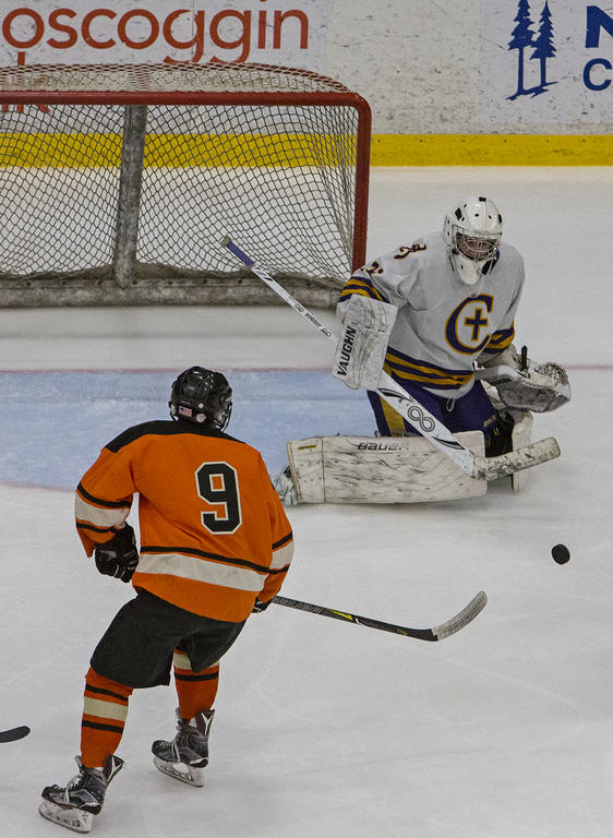 There were a few chances, as Ray was denied by Biddeford senior goalie Owen Sullivan just 26 seconds in, Halvorsen saved bids from McSorley, junior Trenton Ouellette and Colin Petit and on the power play, Sullivan stymied senior Mike Hatch, Anton and junior Riley McCauley.