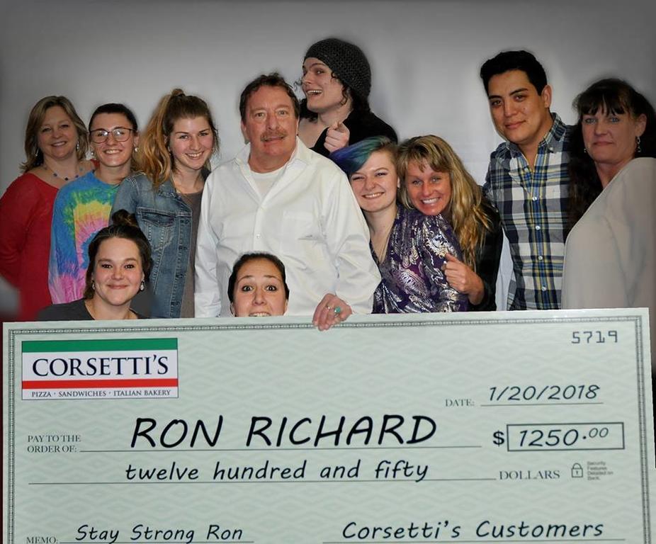 A benefit for Ron Richard, who is recovering from a stroke last fall, raised $1,250 in a collection bucket at Corsetti’s in Westbrook where he worked. Pictured in the front are Jami Pinette and Jen Fecteau and in the back, from left, are Krist Sarchi, Bri Barlow, Emma Berry, Ron Richard, Lela Ferguson, Callie Gorham, Beverly Garrigan, Anthony Rosa, and Tina Lisenbury.