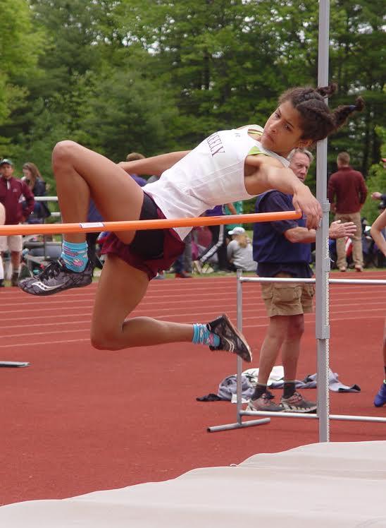 Senior Elizabeth Brown is a top jumper for Greely’s girls’ outdoor track team, the defending Class B state champion.