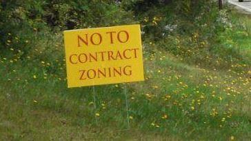 Signs like this one popped up in West Falmouth last fall in response to a controversial contract zone project still under review by the Town Council.