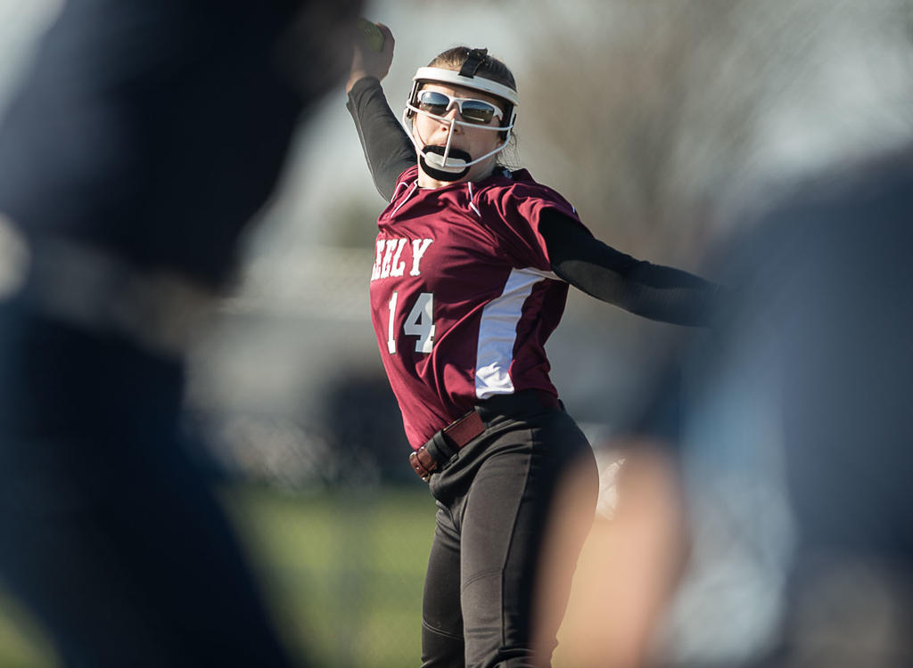 Greely senior ace Kelsey Currier delivers a pitch. Currier earned the win and struck out 12.
