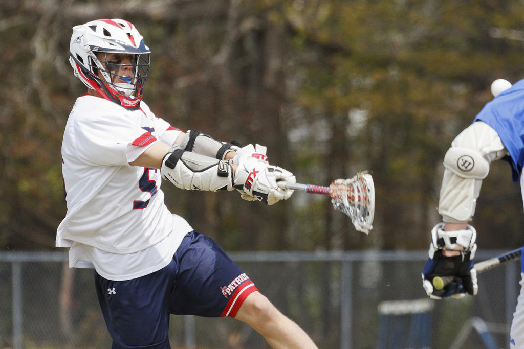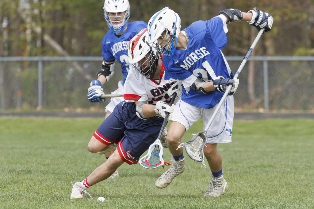 GRAY—The Patriots – Drew Lacerda led with five goals – picked up their biggest victory of the season on Saturday afternoon, May 12, when they toppled visiting Morse 13-6. G-NG grabbed an early lead, then spent the remainder of the game slowly pulling further and further ahead.