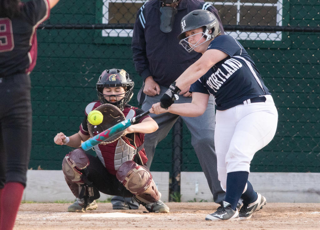 Portland sophomore first baseman Callie Watson lines one of her three hits.