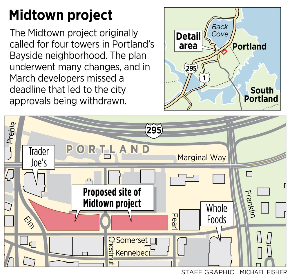 But Portland is eager to get a large garage built in an area that was once part of the midtown complex, Jennings said. The original garage for the project was designed primarily for use by residential and business tenants in the complex, he said, but other commercial developments in the area need parking to move forward.
