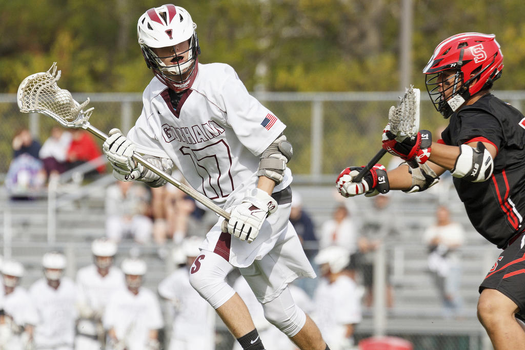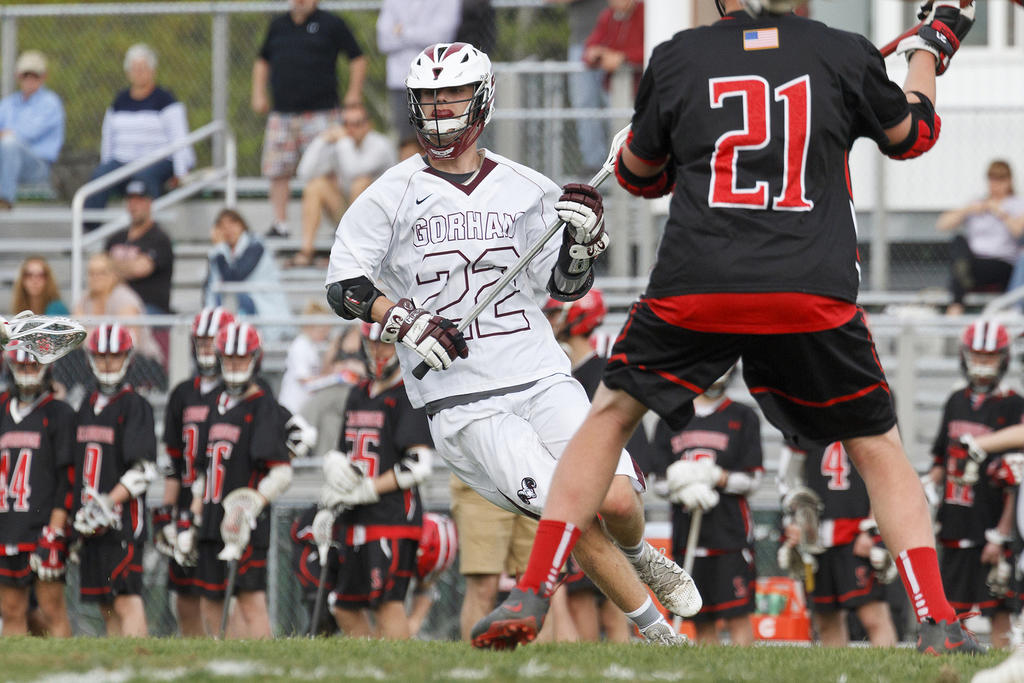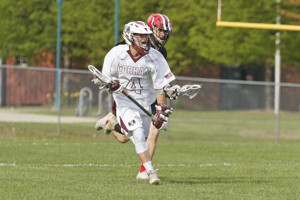 GORHAM—Chris Tucker put the Rams on top early when the Red Storm came to town on Thursday evening, May 17, while teammate Jake Dupuis posted the game’s biggest take, a hat trick and then some. Gorham never looked back once Tucker broke the ice, and Dupuis finished with four total, not to mention an assist. 14-8 the final.