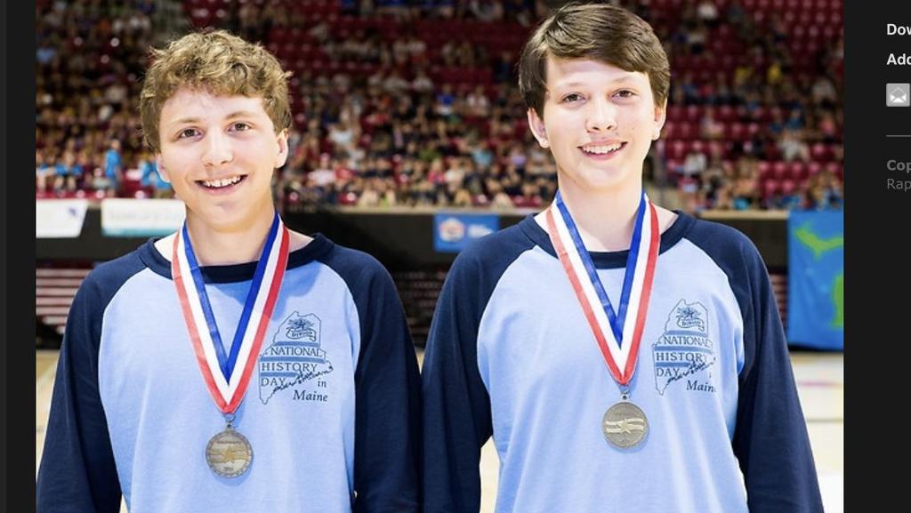 Greely Middle School students Matthew Gilbert, left, and Don Strawbridge won first place in their category in the National History Day competition for their Junior Group Documentary.
