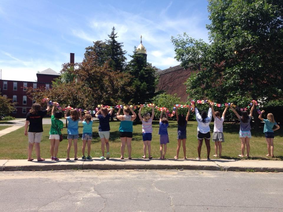 Girls from Girls Are’s leadership camp show off a string of paper links with adjectives that describe them. This year’s camp, happening next week, will be relocating from Maine Girls Academy in Portland to the Walker Memorial Library in Westbrook.