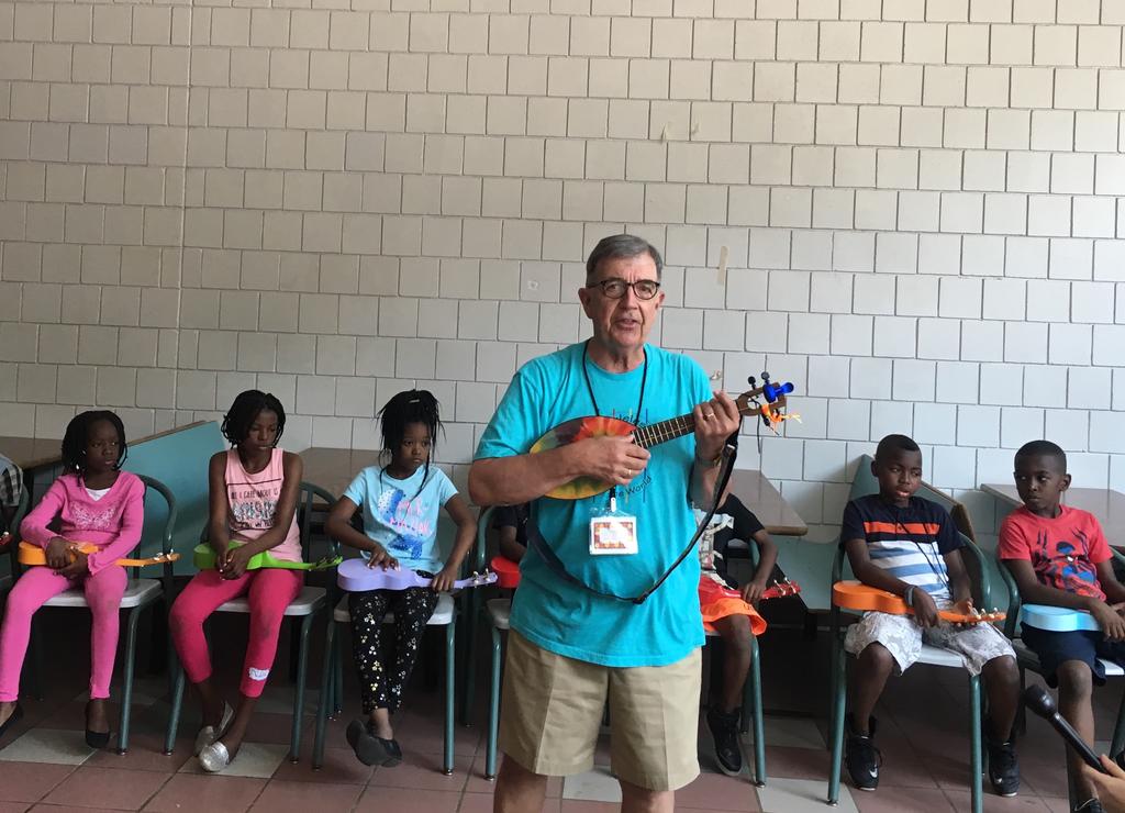 Ridlon said the ukulele lesson, taught by former urban planner and teacher Lee Urban, also serves as an introduction to English.